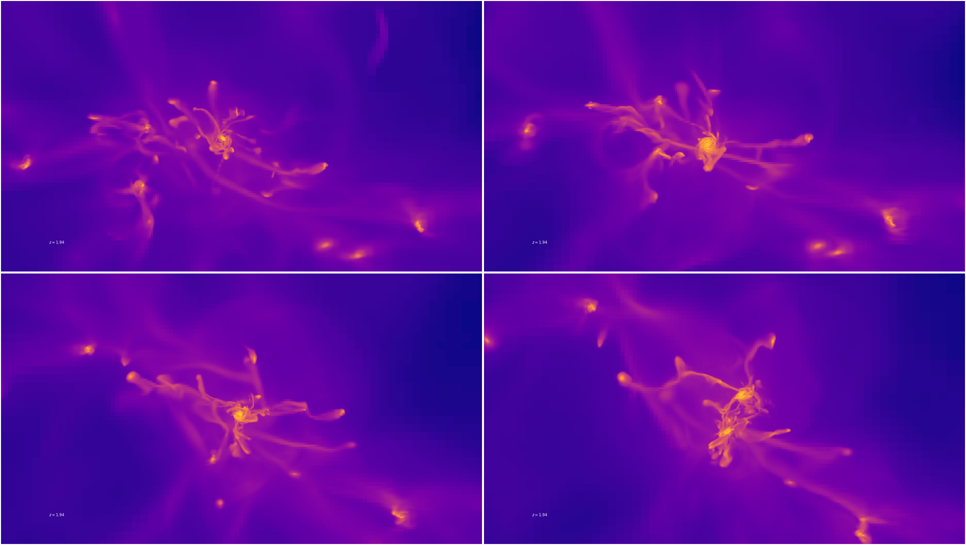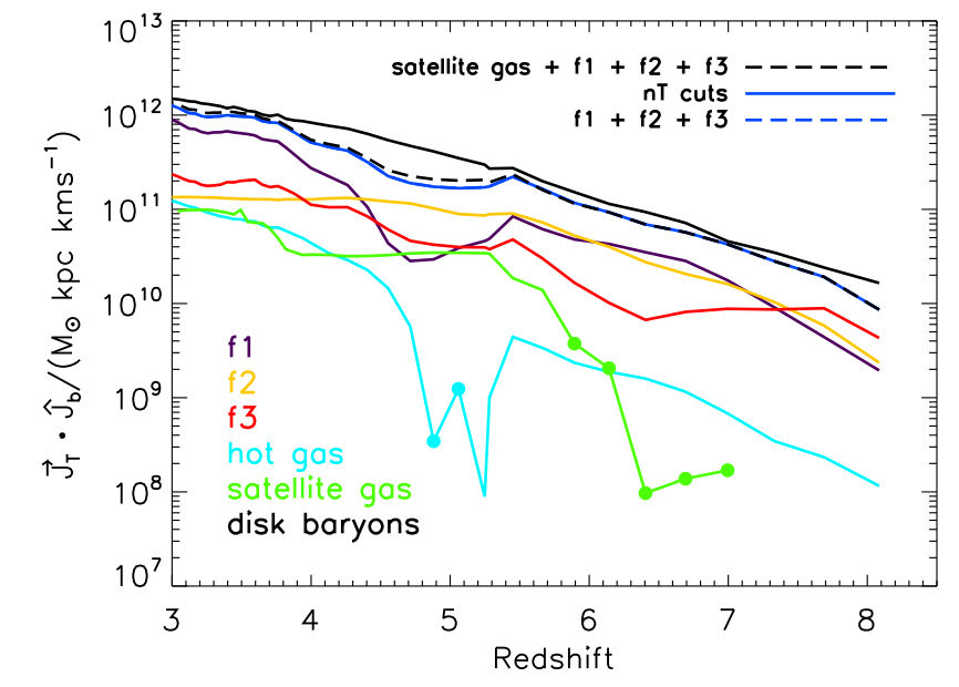 High-\(z\), most of the gas + AM flows along filamentary structures…